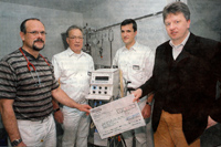 B. Zimmer, J. Gehler, M.Polz und L. Hennemann (v.l.) vor dem neuen Beatmungsgerät für die Früh- und Neugeborenenstation Foto:pdz51
