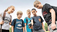 Auf Schatzsuche mit GPS-Gerät begeben sich (von links) Laetitia, Jan, Lukas, Oualid und Alex während ihrer Schulungswoche. Foto: Frank Möllenberg