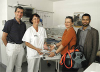 Die Chefärzte Privatdozent Dr. Eric Steiner von der Frauenklinik und Dr. Bernd Zimmer von der Klinik für Kinder ...